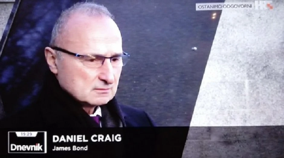 HRT je, naime, u sinošnjem Dnevniku emitovao prilog o Gordanu Grliću Radmanu i njegovoj dvodnevnoj poseti Bosni i Hercegovini. U sredini priloga kada Radman daje izjavu pojavilo se ime Danijela Krejga, odnosno Džejmsa Bonda.
