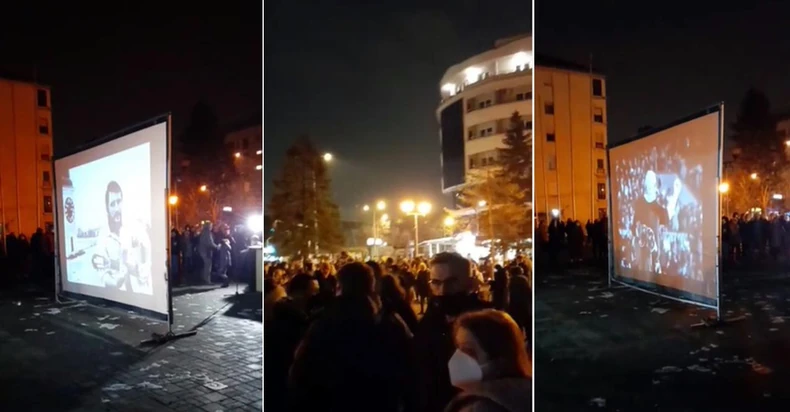 Na video-bimu pušten je Balasevićev koncert, a građani, među kojima je bilo i mnogo dece, oprostili su se od čuvenog Đoleta paleći sveće i ostavljajući plišane zeke.