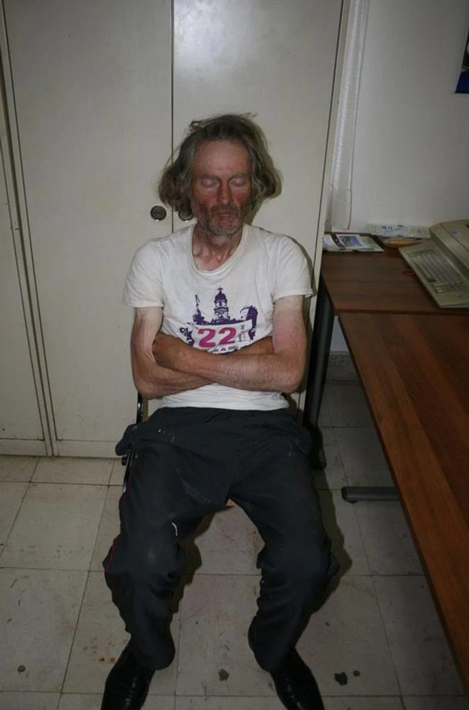 Policija je prvo na mestu događaja pokušala da utvrdi njegov identitet, ali nije imao nikakva dokumenta pa su ga oko 14.35 sati odvezli u policijsku stanicu. Ni tamo nisu imali sreće, jer je on odbijao bilo kakvu komunikaciju. Kako su preneli hrvatski mediji, on ne želi da govori, ne želi da jede, samo ćuti, a tokom fotografisanja nije želeo da otvori oči.
