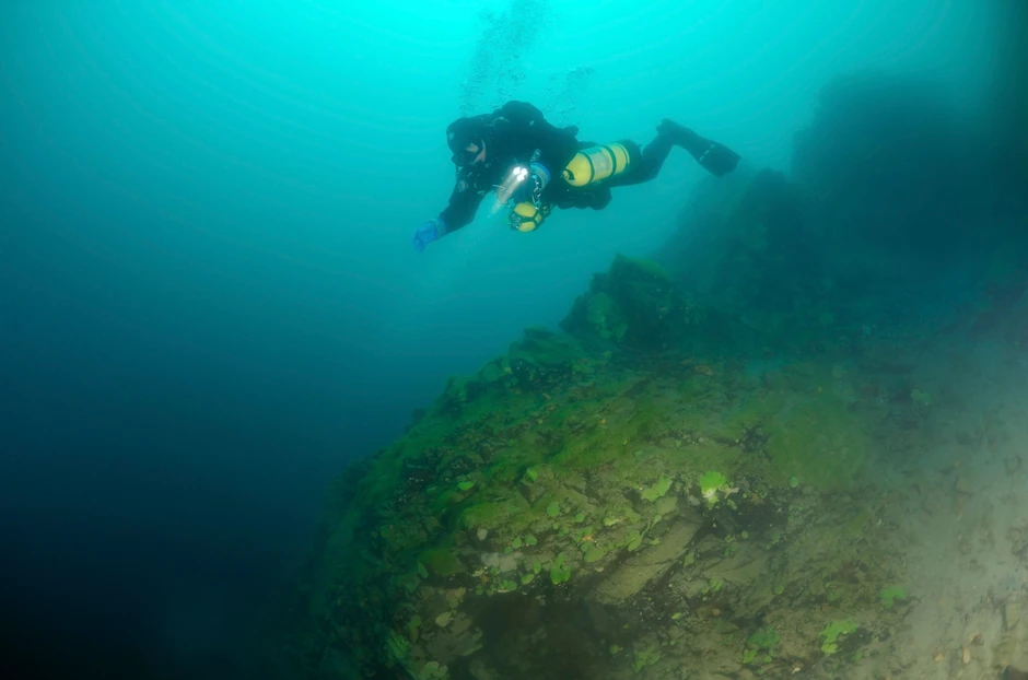 Još veće iznenađenje bilo je otkriće jasno poravnatih kamenih konstrukcija, kao i bazaltnog stuba koji je stajao na dnu. Ovi elementi su sugerisali da ti ostaci ne odgovaraju geološkoj formaciji, već drevnim ljudskim konstrukcijama. Potvrda je došla nakon otkrića brojnih posuda, od kojih su neke odgovarale periodu kasnog klasičnog perioda, a druge preklasičnog, što je ukazivalo na produženu okupaciju lokaliteta pre njenog potonuća.