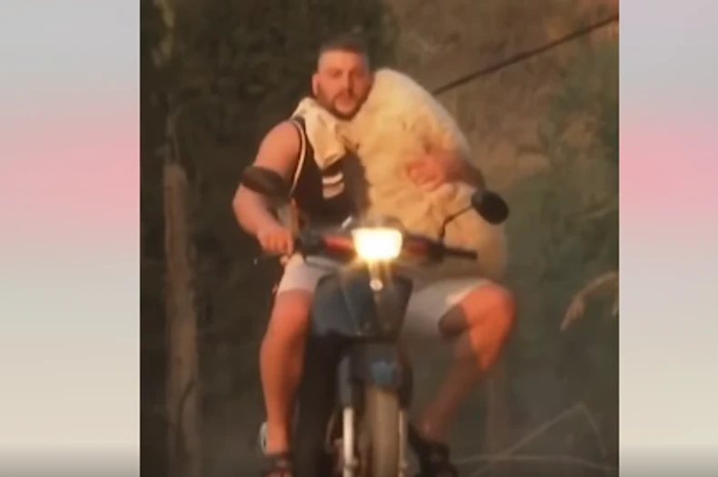Jedna fotografija iz Grčke postala je viralna širom sveta – mladić na motoru, u naručju drži ovcu dok prolazi kroz vatru i dim.