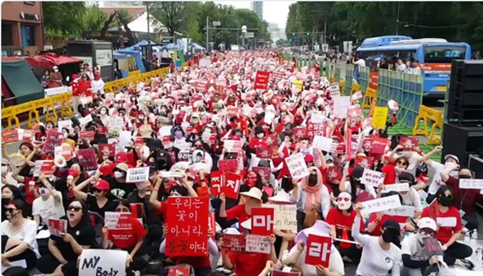 Najveći marš posvećen ženskim pravima u istoriji Južne Koreje održan je juče na ulicama Seula. Oko 30.000 žena, od kojih su mnoge iz straha nosile maske, izrazilo je gnev zbog sve popularnijeg bizarnog pornografskog žanra, čije su junakinje žene koje u javnim toaletima i na drugim javnim mestima krišom fotografišu muškarci.