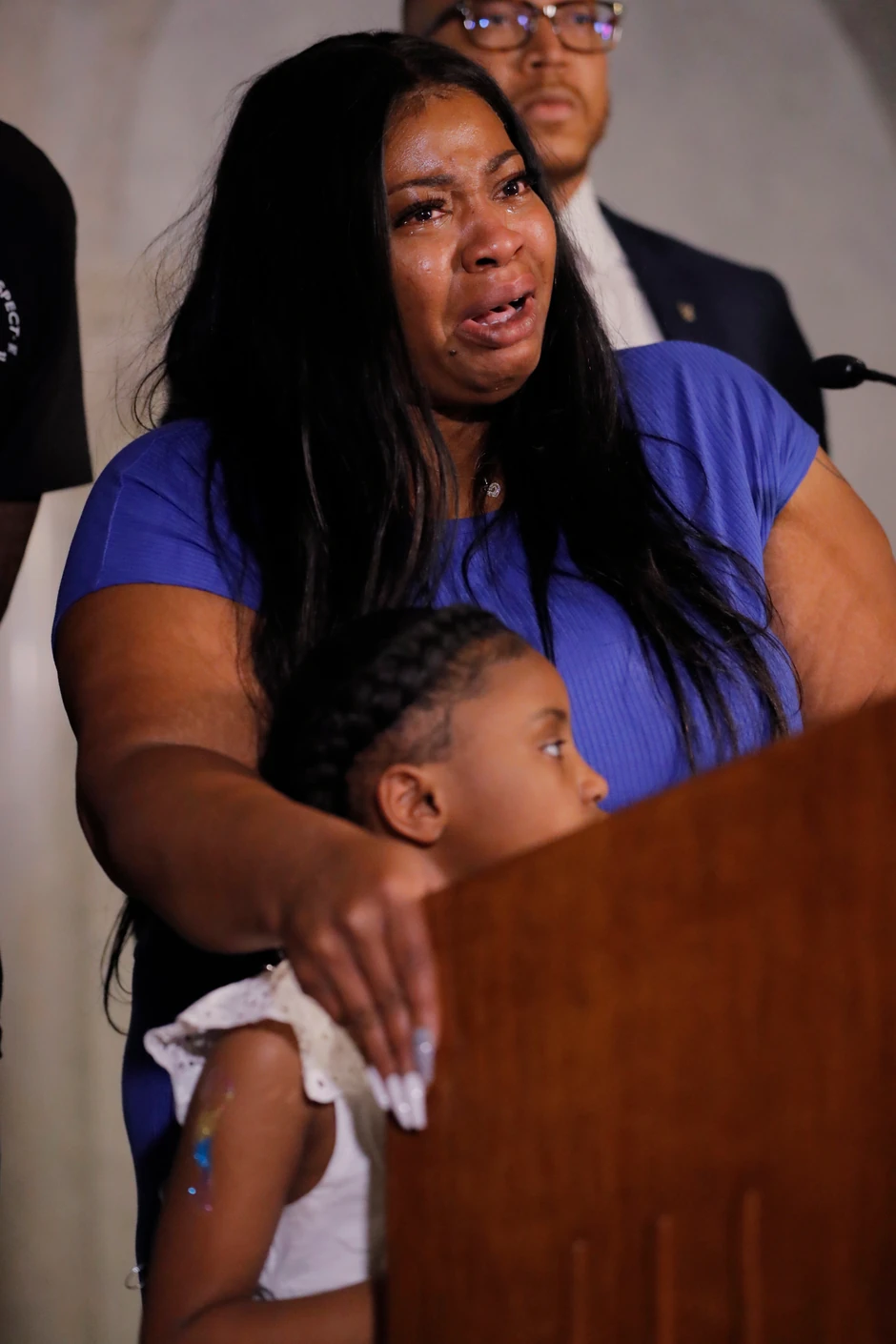 Ona je držeći ćerku u naručju, novinarima rekla da želi da četvorica policajaca umešanih u Flojdovu smrt plate za ubistvo.