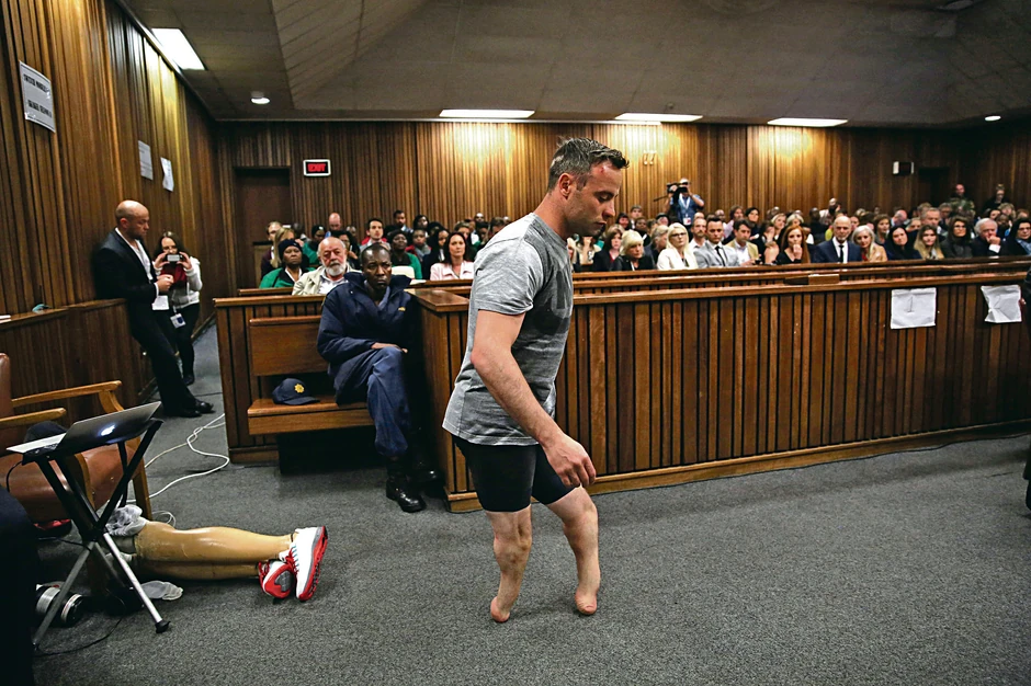 Pistorijus je, na zahtev svog advokata Barija Rua, uklonio proteze za noge. Advokat je smatrao da je „za završnu reč od izuzetne važnosti da se Pistorijus prošeta sudnicom bez pomagala“ kako bi svi uvideli zbog čega zaslužuje „samilost suda“.