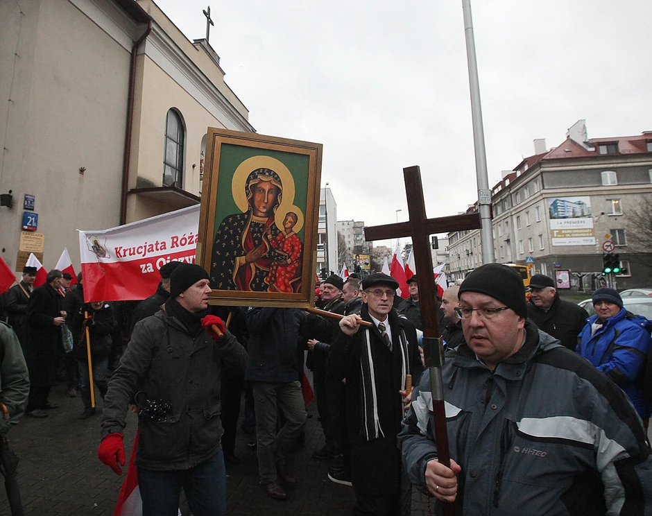 Nakon bogosuženja za povratak poljskih medija na pravi put došli su popodne sa ikonom Bogorodice na čelu pohoda i brojanicama u rukama da se mole da nečastivi napusti novinare "Gazete viborče" i za to da novinari prestanu da lažu Poljake šta je zaista i kakve sve opasnosti nosi rodna ravnopravnost, kako su kazali, "multi-kulti" i kako se u Evropu izvoze islamski teroristi.