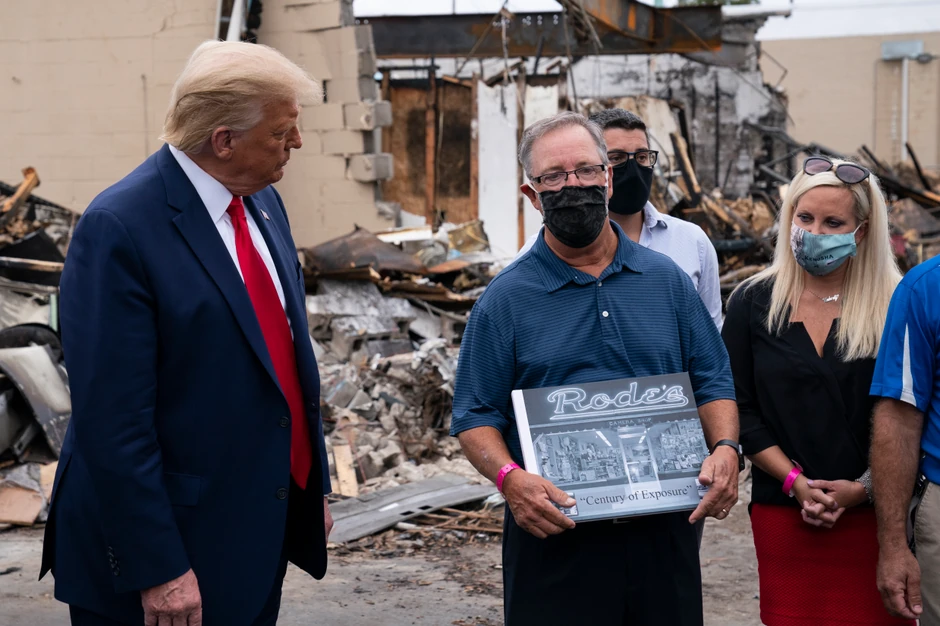 Predsednik SAD je u Kenoši posetio prodavnicu uništenu tokom nereda, kada je pohvalio rad trupa Nacionalne garde koji su pružili podršku lokalnim policijskim službenicima, preneo je Rojters.