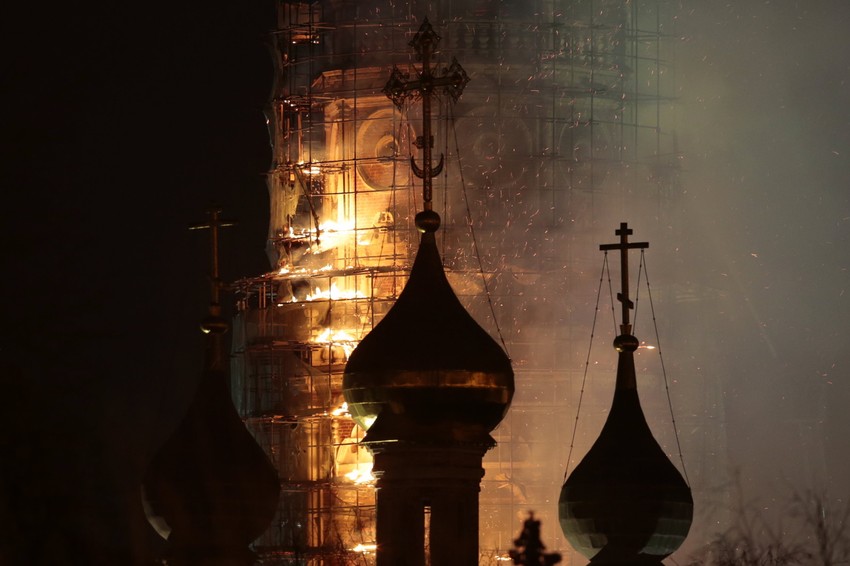 U gašenju je učestvovalo 113 vatrogasaca sa 29 sredstava za gašenje požara, koji je izbio na zvoniku koji se restauriše, navodi Interfaks.