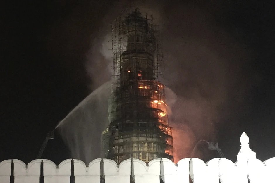 Vatra je bila zahvatila gornji deo zvonika, navodi Tas, pozivajući se na izvor iz moskovske policije.