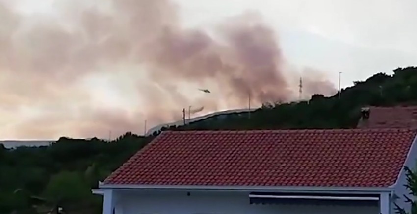 Prema pisanju portala Dalmacija danas, širenje požara pospešuje jak vetar, a u gašenju vatre pomaže helikopter.