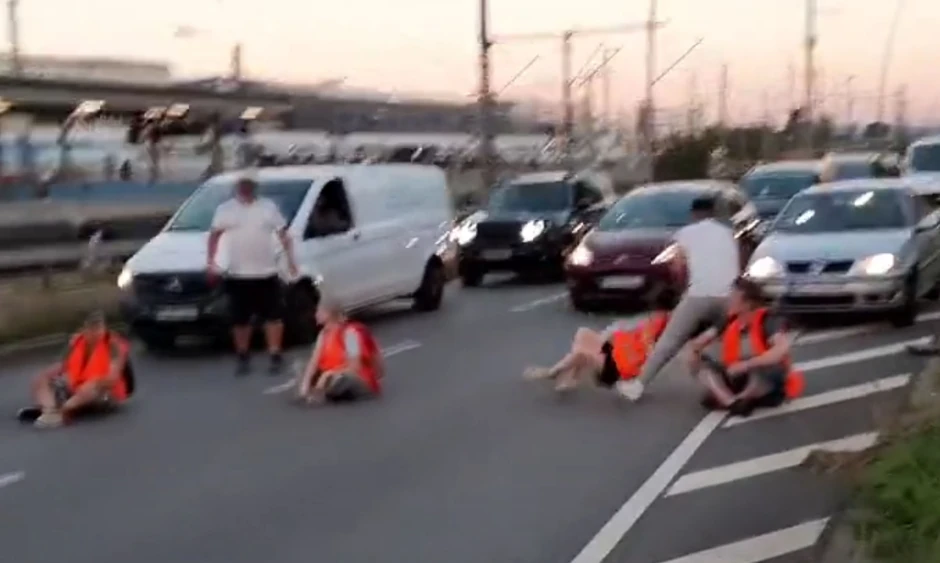 Naime, aktivisti su seli na kolovoz u znak protesta kod nemačkog Manhajma i svojim telima blokirali prolaz automobilima. Začas se stvorila ogromna gužva, a jedan pobesneli vozač je izašao iz automobila i bukvalno zgrabio devojku koja je sedela na podu i bacio je na ivicu puta. Još jednog aktivistu je snažno udario nogom i pesnicom u glavu, a isto je uradio i drugoj devojci.
