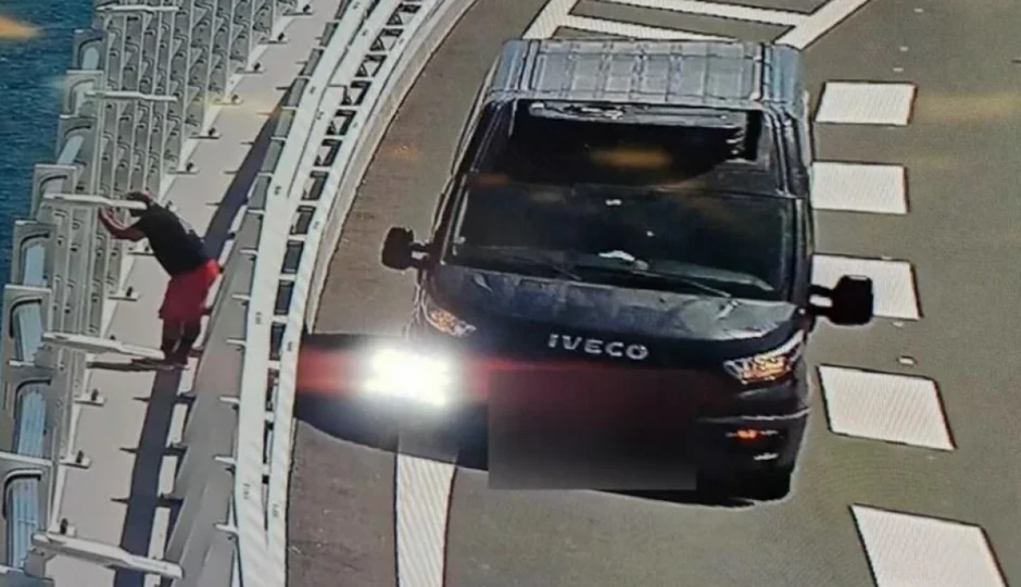 Kako se vidi na fotografiji nadzornih kamera, vozilo marke "Iveco" vozač je zaustavio nepropisno i izašao do ograde mosta da bi napravio fotografiju. Kako prenosi "Slobodna Dalmacija", zaustavljanje vozila na Pelješkom mostu je zabranjeno zbog opasnosti.