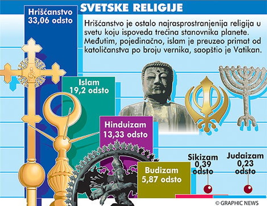 Vatikan je objavio da je broj muslimana u svetu po prvi put premašio broj katolika i da je islam postao najveća religija u svetu. Prema podacima vatikanskog godišnjeg statističkog izveštaja, islam danas ispoveda 19,2 odsto stanovnika sveta, dok se 17,2 odsto izjašnjavaju kao katolici.