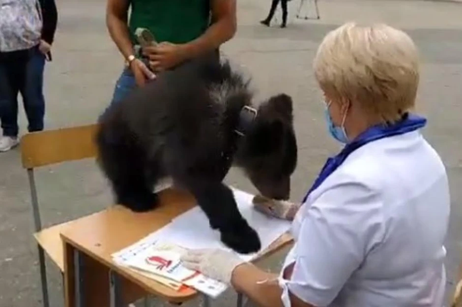 U Rusiji je danas poslednji dan u kojem građani mogu da se izjasne o predloženim ustavnim reformama, a zaposleni u zoološkom vrtu u Barnaulu, u ruskoj republici Altaj, doveli su mladunče medveda na biračko mesto.