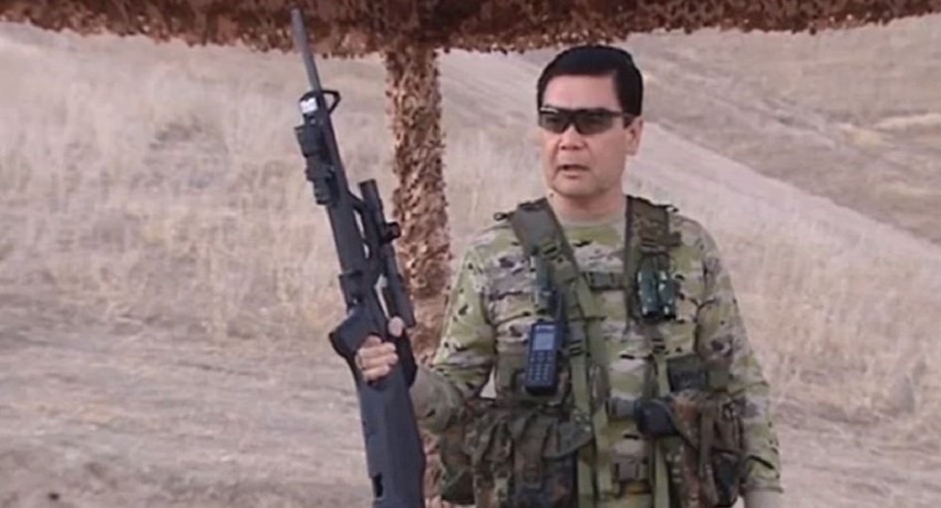 Turkmenistanski predsednik snimljen je kako prikazuje svoje vojne veštine — puca, baca noževe, naređuje napad. To nije sve. Ima i video na kojem peva.