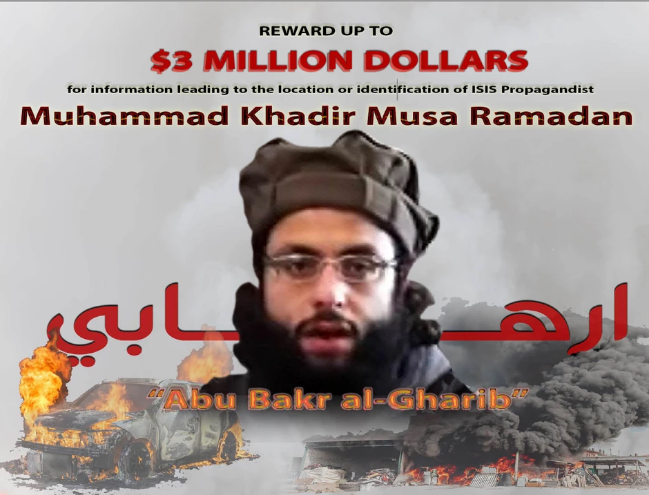 Američki Stejt department danas je saopštio da će ponuditi nagradu od tri miliona dolara za informaciju koja će dovesti do hapšenja jednog od lidera "Islamske države" Jordanca Muhameda Kadir Muse Ramadana, poznatog i po imenu Abu Bakr el Garib.