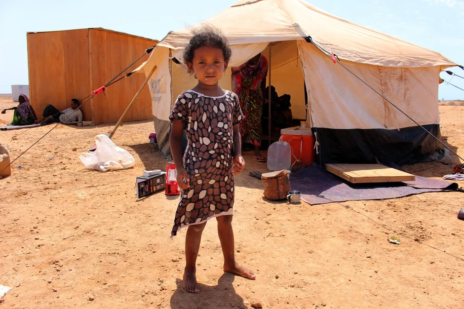 Poput mnogih izbegličkih porodica koje žive u ovom improvizovanom kampu istočno od jemenske luke Al Mukala, bila je primorana da napusti dom zbog bombardovanja i sukoba.