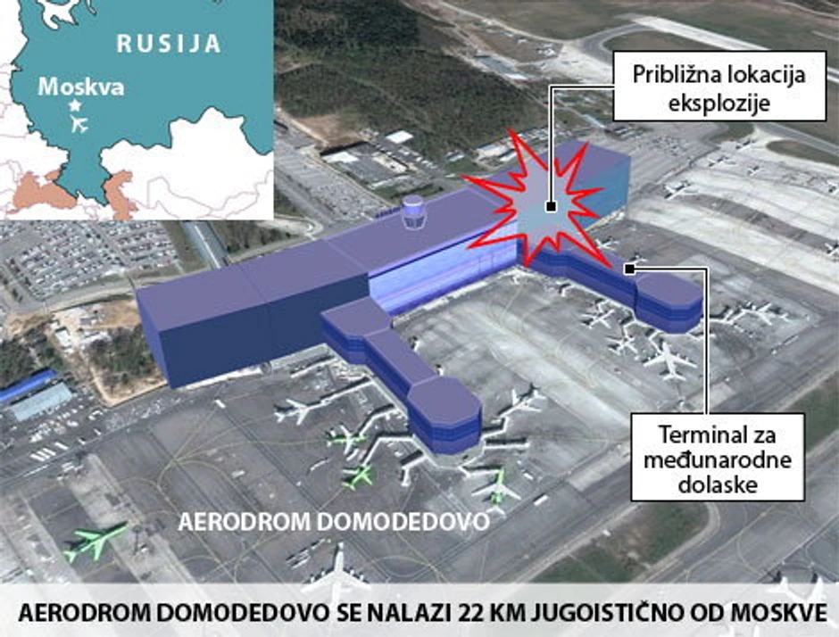 Eksplozija se dogodila u 16:32 po moskovskom vremenu (14:32 po centralnoevropskom), na ulasku u terminal za međunarodne dolaske.
