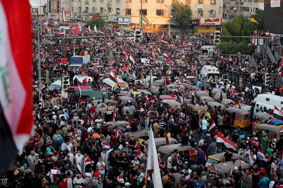 Desetine hiljada demonstranata okupilo se danas na trgu Tahrir u Bagdadu na najmasovnijem protestu u poslednjih mesec dana od kada su demonstrancije počele.