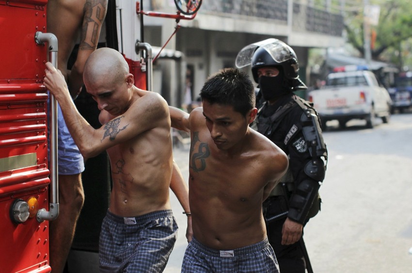 Tom prilikom napravljene su fotografije ozloglašene bande Bario 18 koja je iz Izalko zatvora prebačena u San Francisko Goteru. Prebačeno je ukupno 1.177 njenih članova.