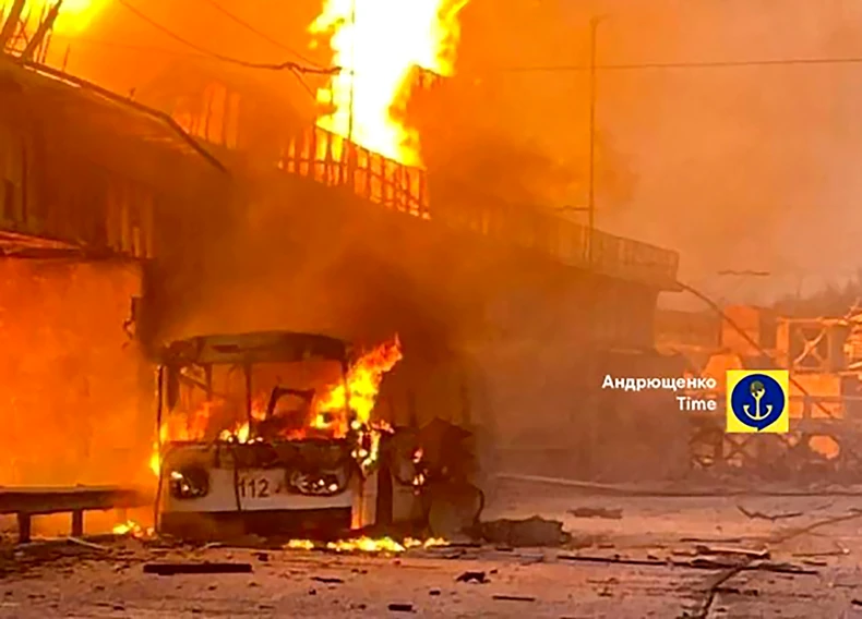 Dramatični snimci pokazuju kako hidroelektrana Dnjepar - najveća ukrajinska - izbija u plamenu nakon udara koji je takođe pogodio trolejbus, uzrokujući nekoliko civilnih žrtava.