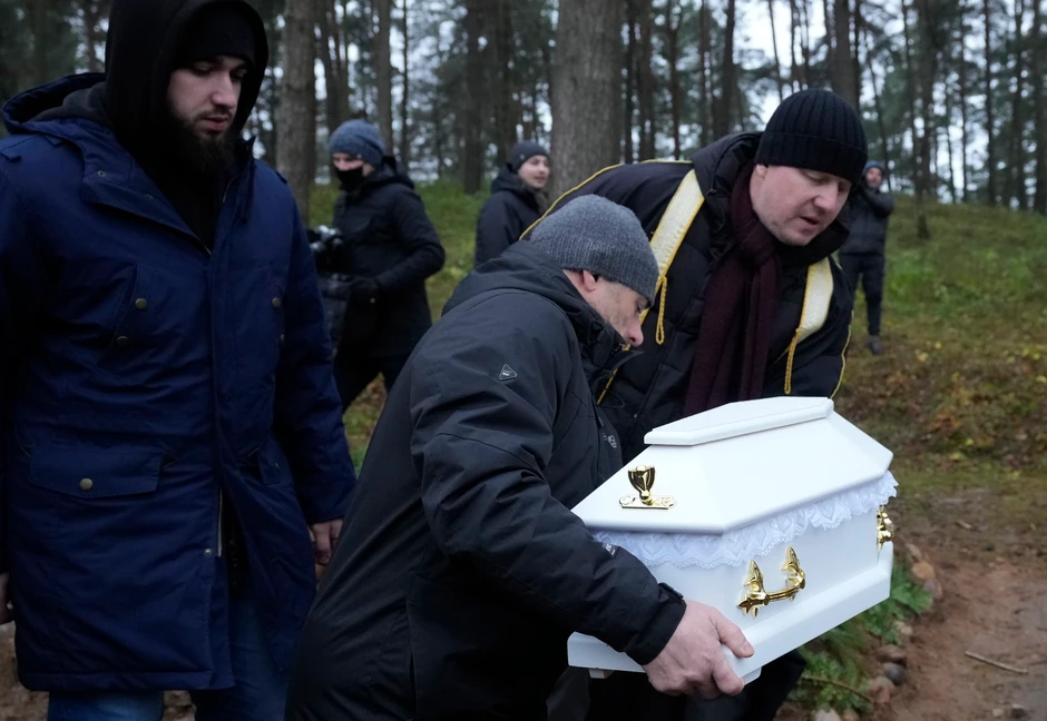 Nakon što je preko noći pao prvi sneg ove sezone, imam Aleksander Ali Bazarevič je čekao u nadi da će otac deteta — u izbegličkom centru i sa suprugom hospitalizovanom u teškom stanju — stići. Kada se nije pojavio, Bazarevič je predvodio sahranu ispred stare drvene džamije i na groblju.