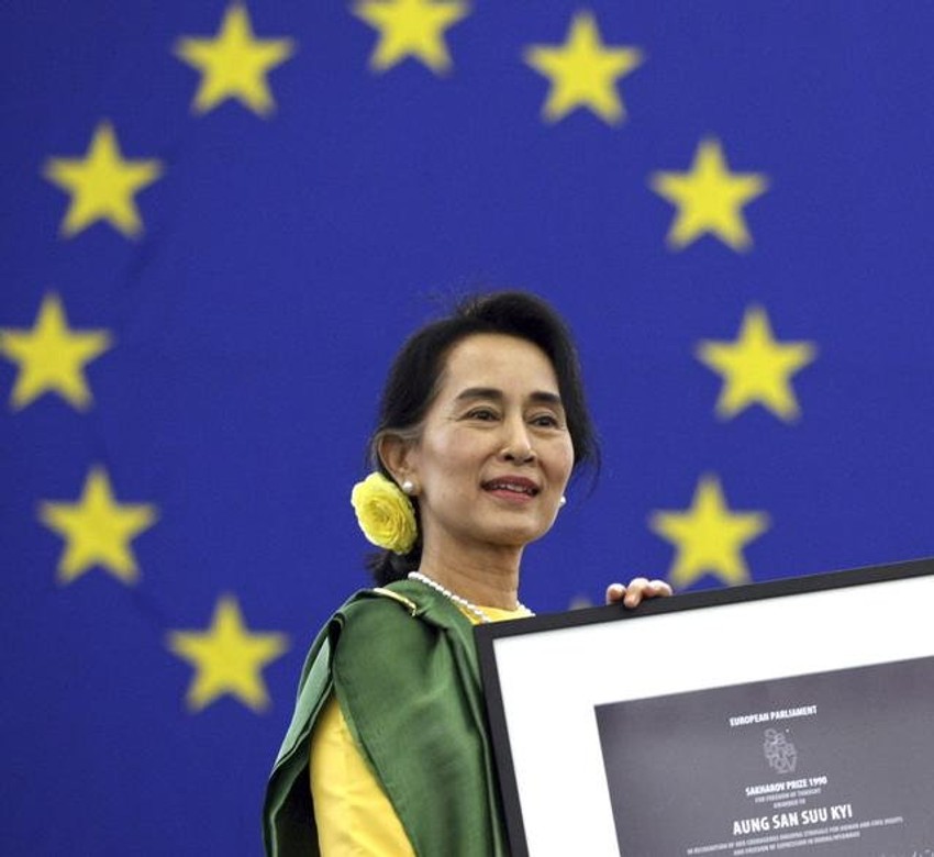 Liderki mjanmarske opozicije i dugododišnjem borcu za ljudska prava u ovoj zemlji Aung San Su Ći danas je napokon uručena nagrada Saharov za slobodu misli, koju joj je Evropski parlament dodelio pre 23 godine.
