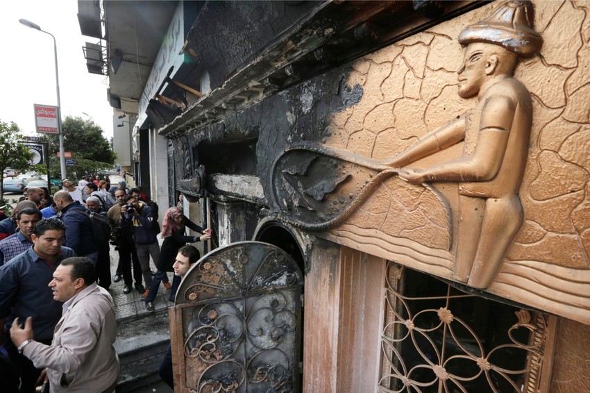 Ranije su agencije javile da je napadač jedan od zaposlenih koji je dobio otkaz, dok je egipatska agencija MENA, pozivajući se na neimenovane zvaničnike, objavila da su tri muškarca, koja su se dovezla na motorciklu, bacila koktele i potom pobegla.