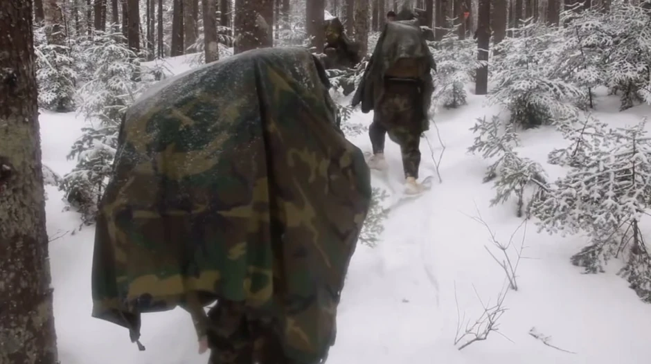 Podelili su nas u grupe od po desetoro i odveli nas u šumu, gde su nam dali neke osnovne instrukcije o preživljavanju u divljini, uključujući i uputstvo o korišćenju skija koje smo dobili.