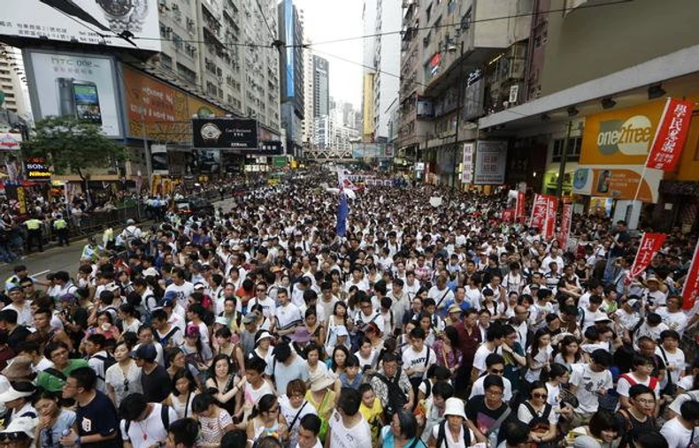 Demonstranti protestuju zbog nedavne odluke Vlade Kine da ograniči domet izborne reforme za prve izbore lidera Hongkonga, 2017. godine. Kineske vlasti ranije su obećale da će u Hongkongu 2017. godine biti organizovani izbori, ali su kasnije saopštile da će prethodno biti neophodno da kineski Odbor za imenovanje odobri listu kandidata.