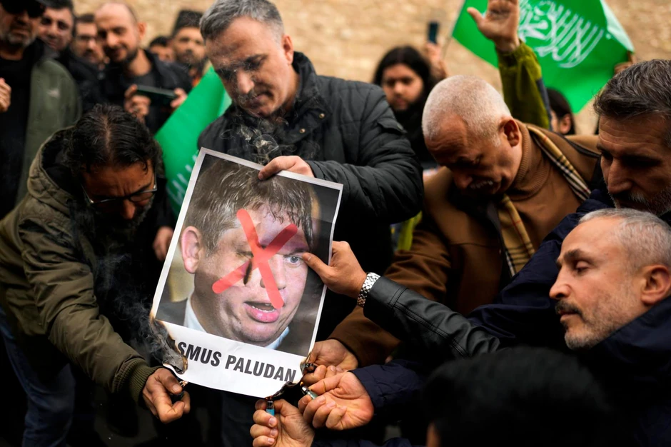 Demonstranti su spalili fotografiju dansko-švedskog političara Razmusa Paladana koji je spalio primerak Kurana u Švedskoj, prenosi AP.