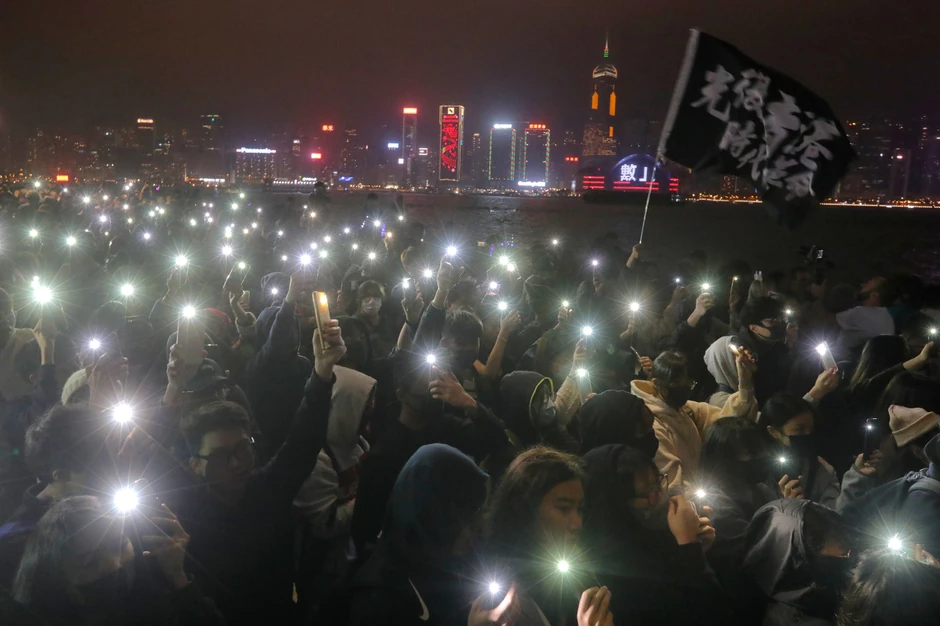 Oni su nosili transparente na kojima je posalo "Slobodni Hongkong" i mahali američkim i britanskim zastavama, prenosi AP.