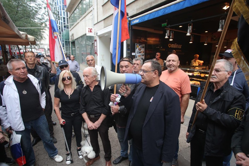 Skup pod nazivom "Za 'Za dom spremni' spremni", održan je ispred prostorija Srpskog narodnog veća (SNV) u centru Zagreba, a članovi A-HSP zaopretili su premijeru Andreja Plenkovića u slučaju da skine spomen ploču hrvatskim veteranima u Jasenovcu, na kojoj se nalazi taj ustaški pozdrav.