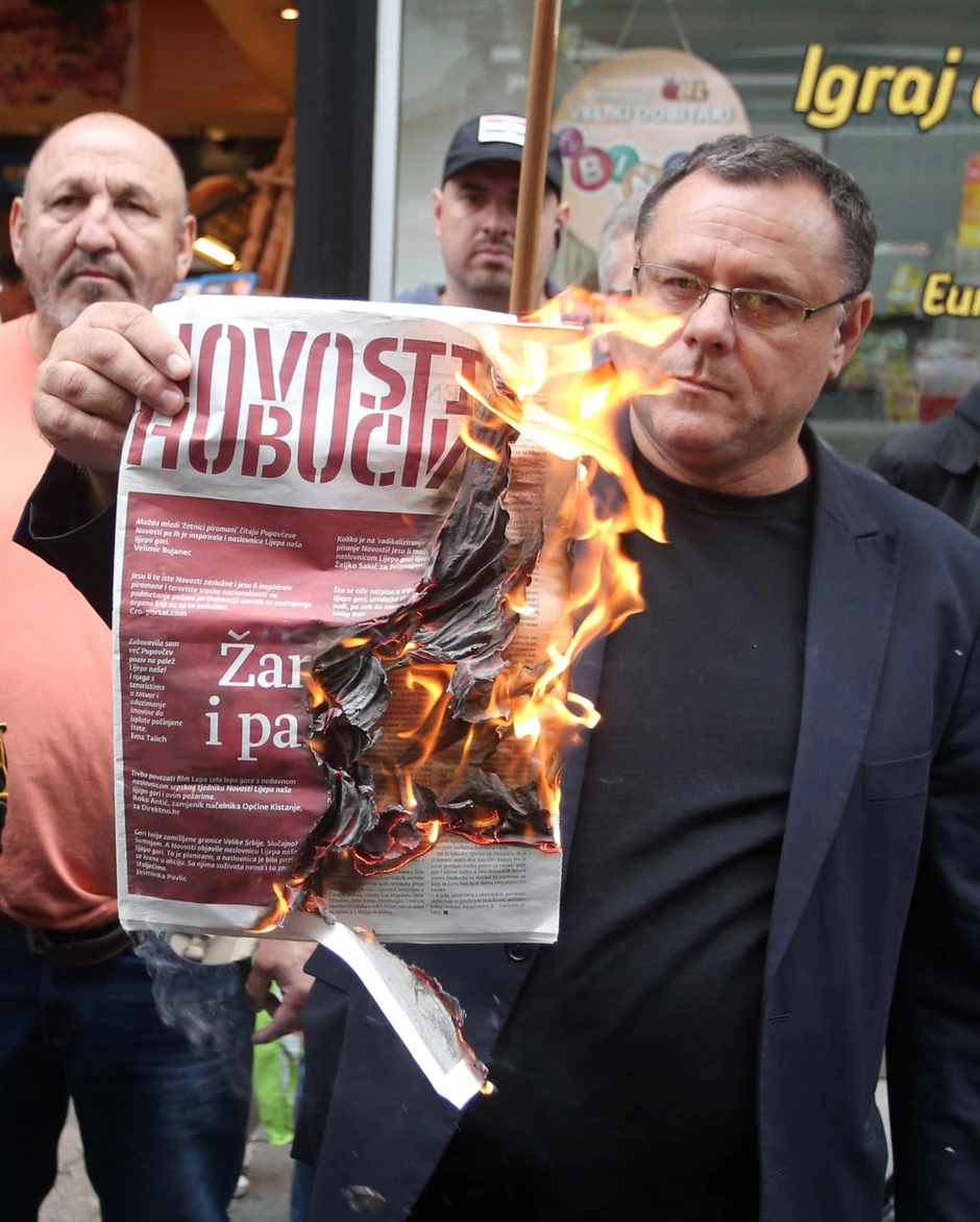 - Zar nije to podsticanje da se pali Hrvatska usred turističke sezone, zar nije to podsticanje zbog kojeg posla treba imati Državno tužilaštvo? Pošto lepo gori, sada će lepo goreti ove novine - potom je poručio i spalio navedeni primerak nedeljnika.