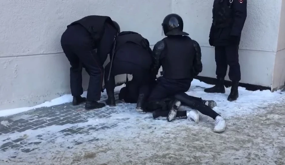 Kako navode, na snimku, koji je u međuvremenu postao viralan u Rusiji, vidi se grupa policajaca koja pokušava da privede jednog demonstranta u Čeljabinsku.