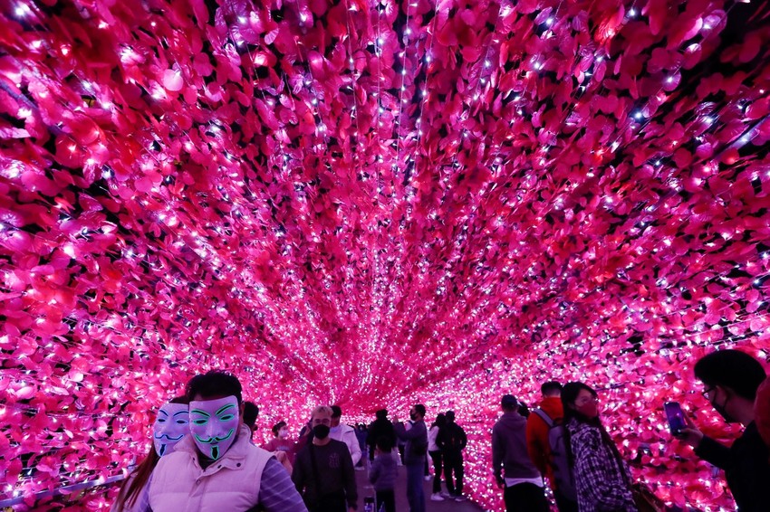 Šarena svetla i ukrasi učinili su ovaj pešački most u Tajpeju, Tajvan, veoma popularnim među lokalnim stanovništvom i turistima koji su pohrlili da naprave fotografiju.