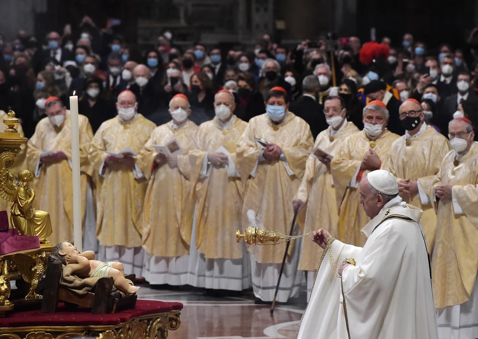 U Rimu, papa Franja bez maske služio je misu za Badnje veče pred oko 2.000 ljudi u bazilici Svetog Petra, gde je ulaz bio ograničen i vernici su morali da nose maske.