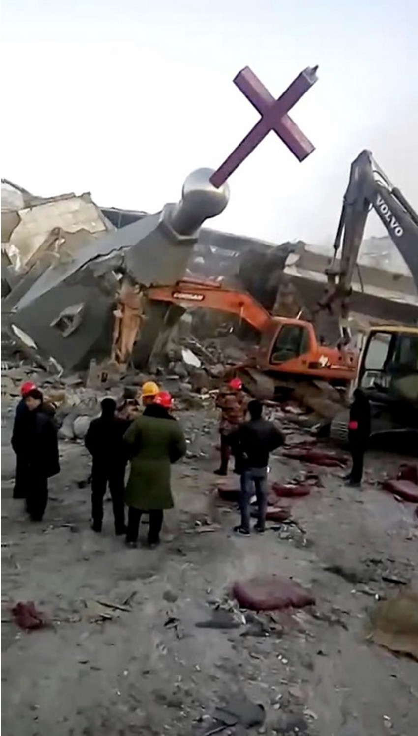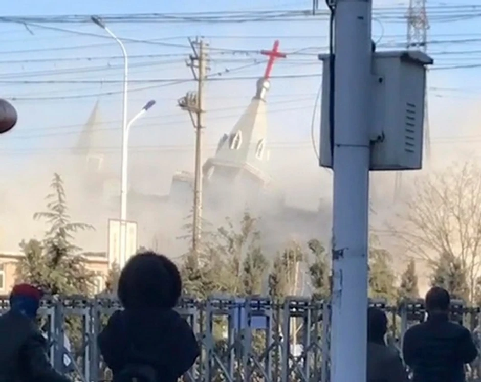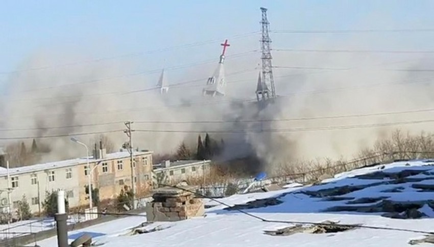 Navode se tvrdnje očevidaca i aktivista iz inostranstva da su snage paravojne kineske Narodne naoružane policije u utorak koristile rovokopače i dinamit kako bi uništile Crkvu Zlatnog svećnjaka u Linfenu.