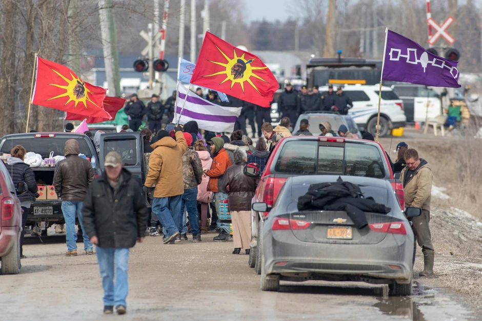 Policija je u ponedeljak uhapsila neke od demonstranata iz plemena Mohavk na teritoriji Tjendinaga Mohavk, koji su blokirali prugu u znak podrške pripadnicima plemena Ver 'suvet' en iz Britanske Kolumbije, koji žele da zaustave postavljanje gasovoda na svom zemljištu.