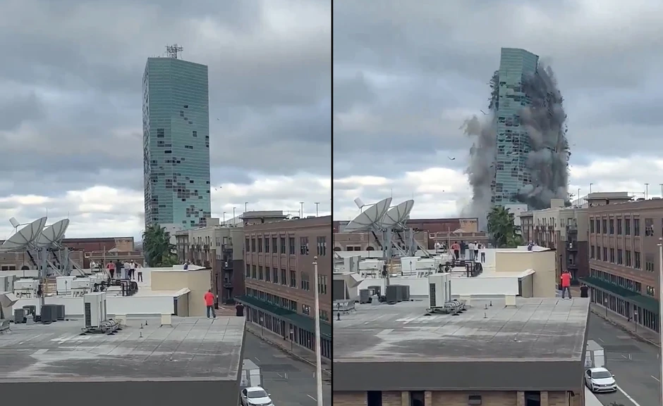 Napuštena zgrada od 22 sprata u Lejk Čarlsu u Luizijani — nekada ikona u gradu koja je postala simbol uništenja od uragana Laura i Delta — implodirala je u subotu nakon što je bila prazna skoro četiri godine.