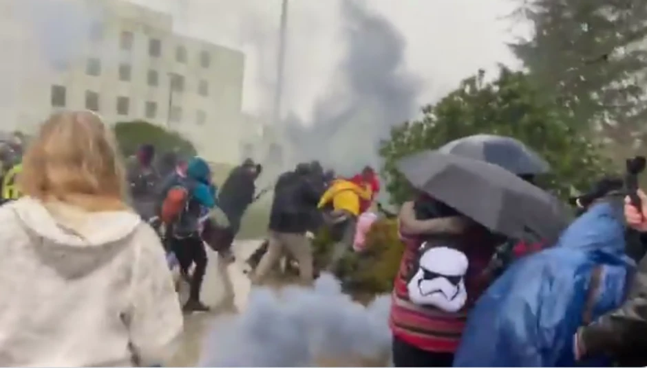 U Portlandu su izbili sukobi sa policijom. Na snimcima se vide kako lete dimne bombe, dok demonstranti pucaju iz pejntbol pušaka.