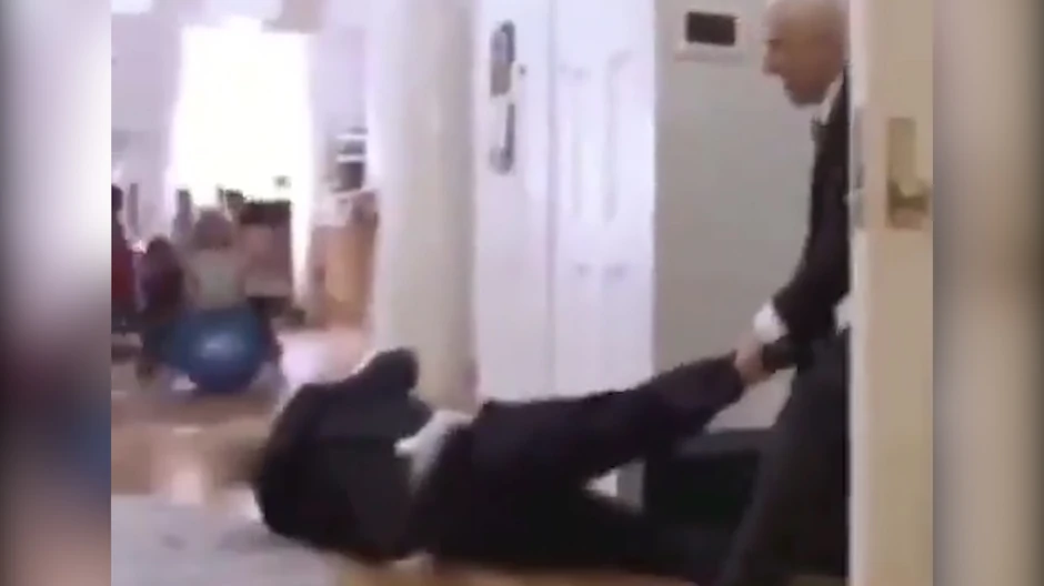 - Neću da idem, neću da idem! - viče "Tramp" dok poput deteta skače na lopti, a zatim ga odvlače vukući ga za po podu.