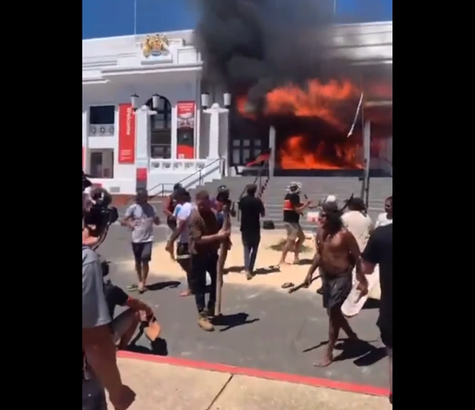 Pred tom zgradom protestuje se već danima za prava Aboridžina, australijskog autohtonog stanovništva.