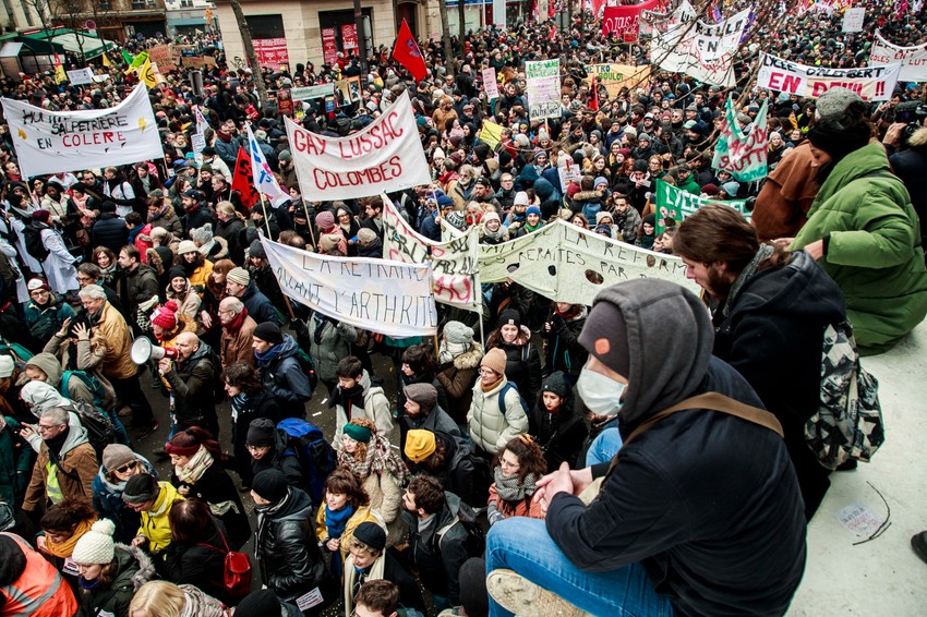 Makronova mladalačka arogancija ne pomaže gašenju vatre. Prezriv stav vlade prema sindikatima i njena nesposobnost da detaljno objasni reforme doveli su do toga da javnost masovno podrži štrajkače. Sentiment javnosti jasno oslikavaju transparenti sa natpisom "neka jedu univerzalni penzioni sistem", aluzijom na čuvenu izjavu Marije Antonete.