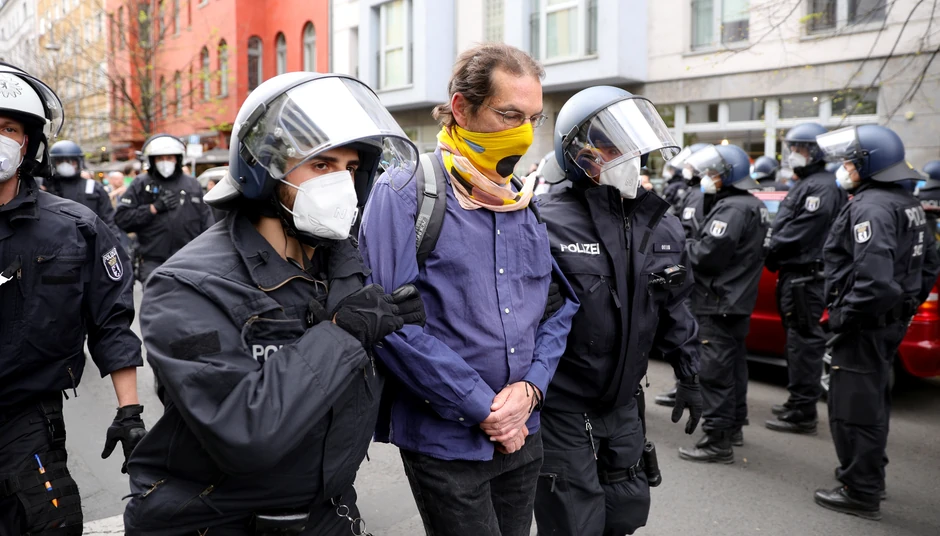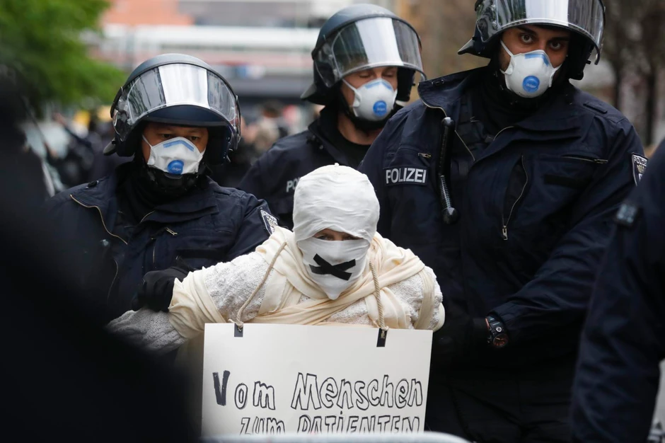 U centru Berlina u subotu je na ulicu izašlo oko 1.000 ljudi kako bi protestovali protiv mera uvedenih zbog pandemije korona virusa. Uprkos opštoj zabrani demonstracija tokom epidemije, ljudi su se okupili da bi izrazili nezadovoljstvo zbog strogih ograničenja. Veliki broj demonstranata stajao je ispred metalnih barijera koje je policija postavila oko Trga Roze Luksemburg kako bi sprečili okupljanje prevelikog broja ljudi.