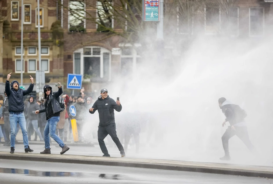 Policija u Ajndhovenu je koristila i vodene topove i suzavac protiv više stotina demonstranata i upozoravala preko razglasa da se izbegava centar grada.