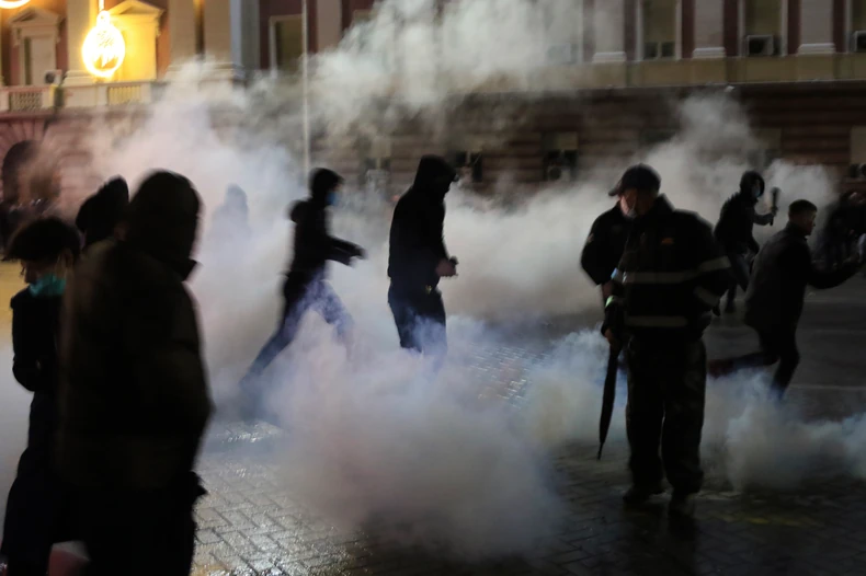 U sukobima koji su nastali dok su okupljeni pokušavali da uđu u kompleks zdanja albanske vlade, gde se nalazi i kabinet premijera Edija Rame, policija je koristila suzavac.