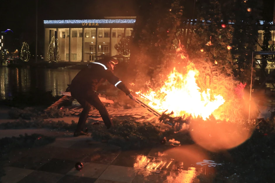 Demonstranti tvrde da protest nije politički, ali su se među okupljenima mogle videti i pristalice opozicije, prenosi Tanjug. Na jednom od snimaka se vidi kako su demonstranti zapalili i srušili okićenu jelu.