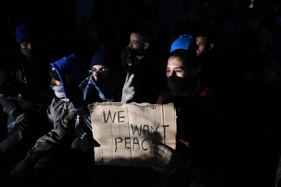 Veliki broj migranata došao je do ograde sa grčke strane, a u prvim redovima su deca, koja sa sobom nose transparente na kojima piše: "Mi nismo teroristi, želimo mir" i "Hvala na pomoći".
