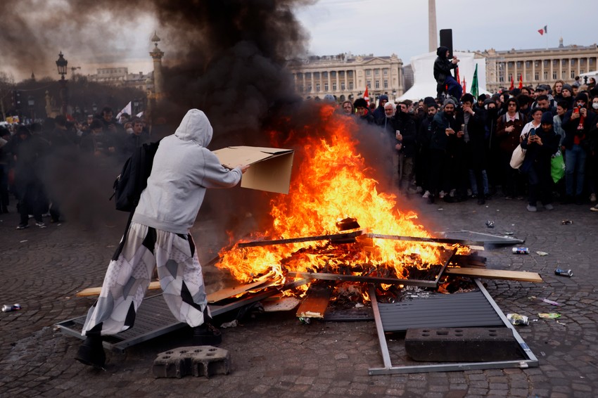 Francuska premijerka Elizabet Born prethodno je pokrenula specijalnu proceduru za usvajanje nepopularnog zakona o penzionoj reformi u Narodnoj skupštini bez glasanja, usred povika i skandiranja levičarskih poslanika koji su mahali transparentima protiv penzione reforme.