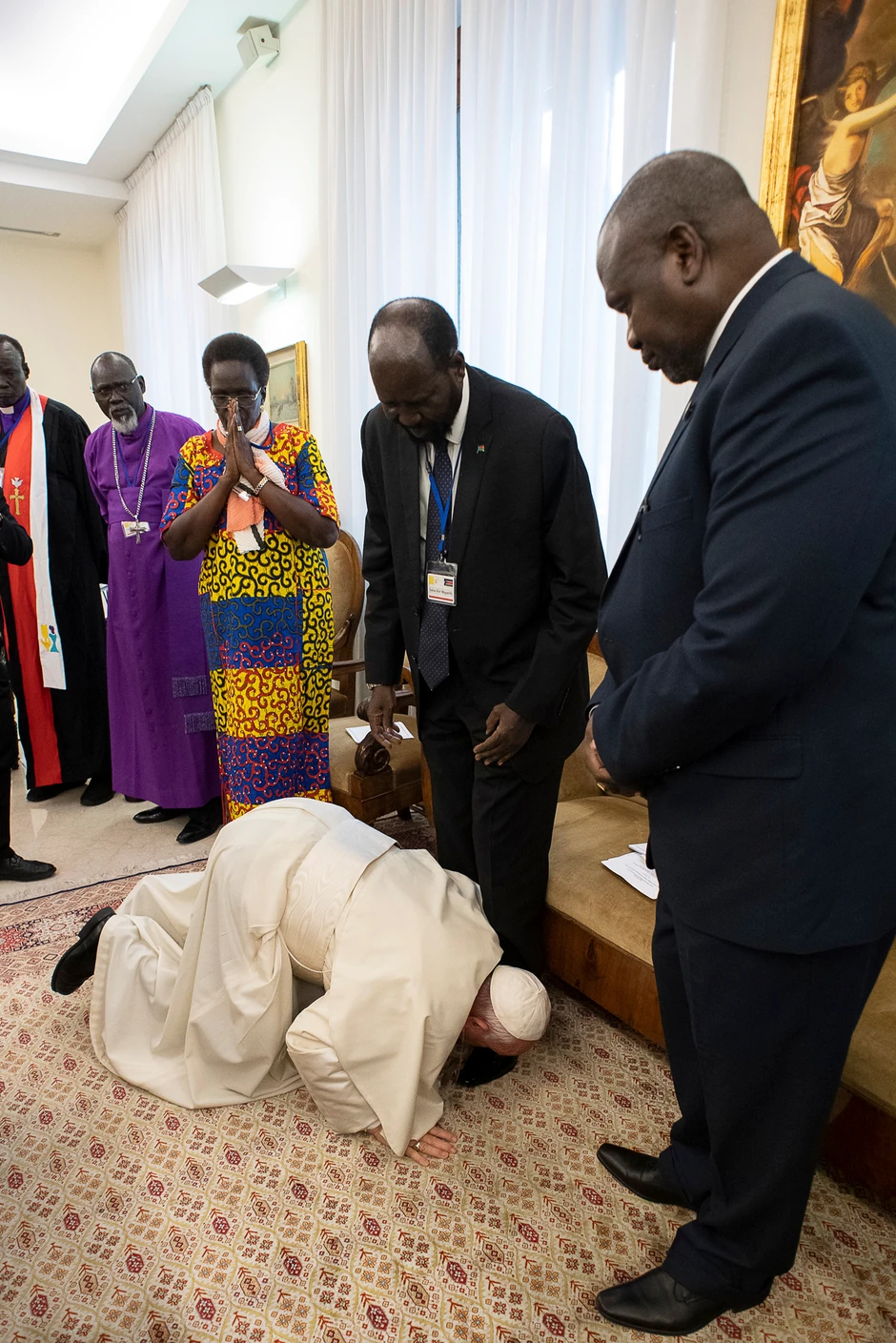 Papa Franja danas je učinio gest bez presedana kada je kleknuo i poljubio stopala vođama Južnog Sudana koji su prethodno međusobno ratovali i pozvao ih da se ne vraćaju građanskom ratu.